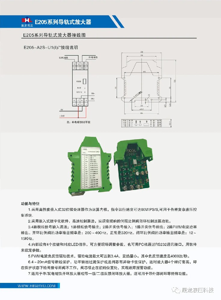 适用于不带阀芯反馈或不带压力反馈的各类比例溢流阀、比例减压阀、比例流量阀、比例方向阀等。它安装在电控柜的卡铁上,它与比例阀之间用电缆线相连。该放大器安装在电控柜中,更好的避免了设备的漏电、震动、干扰、···