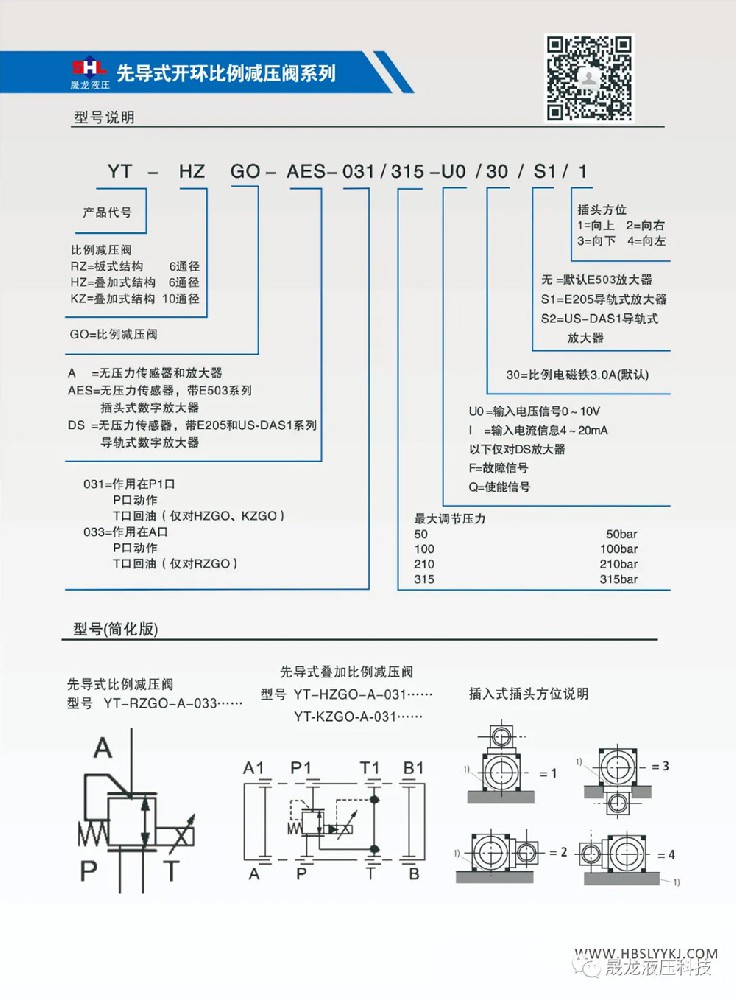基本介绍:属内部先导控制式比例减压阀;具有压差补偿功能,保证输出压力很稳定;可选配插头式放大器或导轨式放大器以及集成式放大器;规格:6通径和10通径,板式安装结构 和 叠加式安装结构;板式结构:PAT通,A口为···