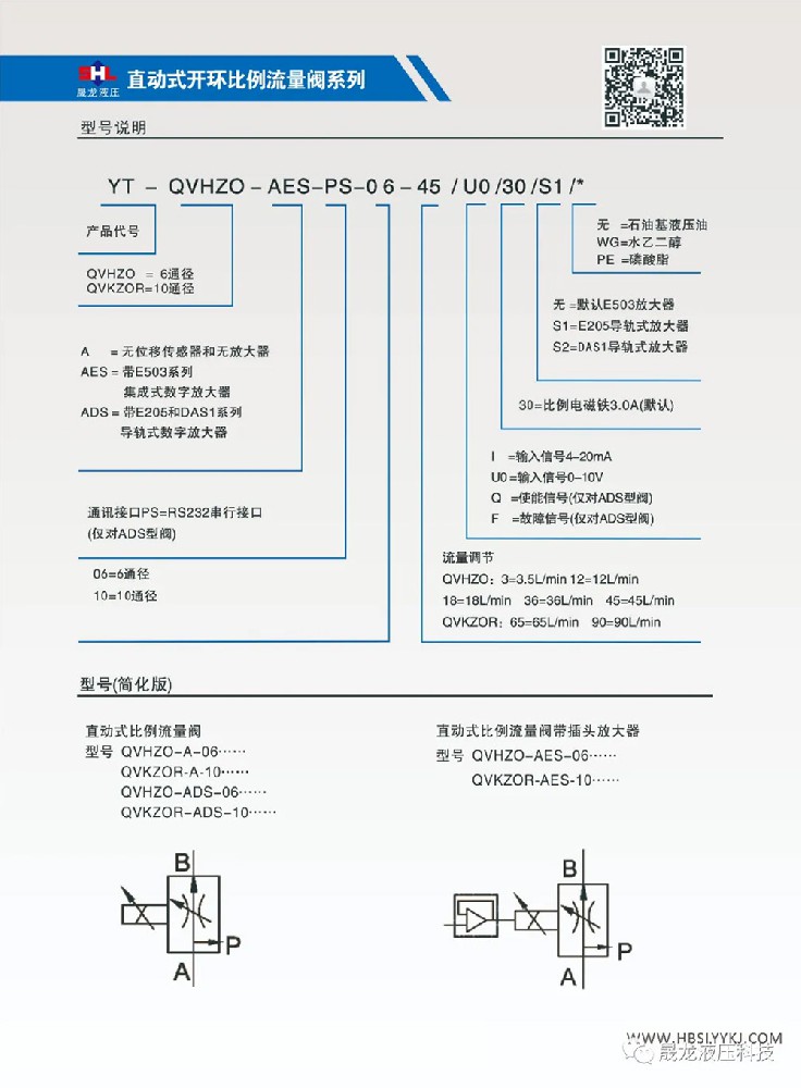基本介绍:比例电磁铁直接驱动阀芯; 三通型(PAB)流量是A口进,B口输出,P口不用;带有恒压差流量补偿功能,所以负载大小对B口输出流量影响很小;可选配插头式放大器或导轨式放大器;规格为6通径和10通径,板式安装···